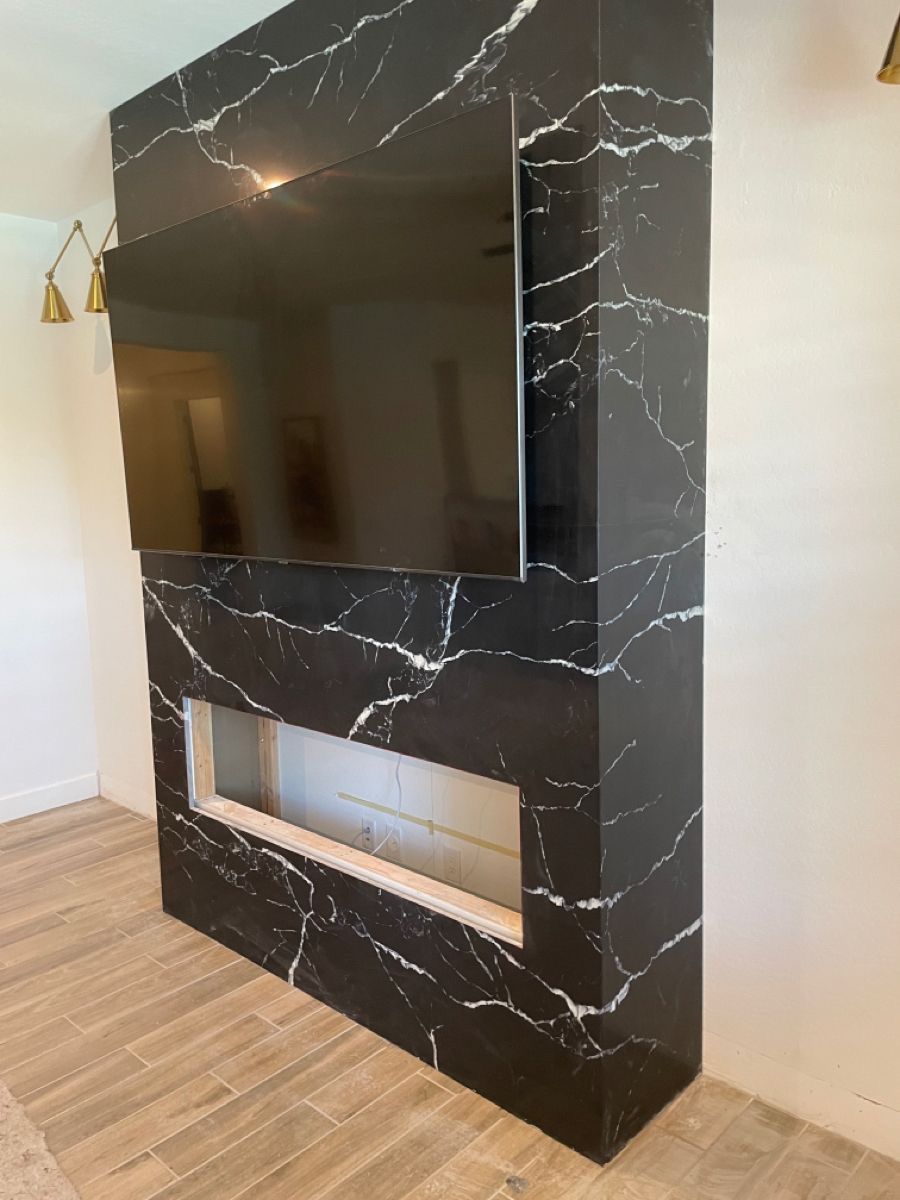 Mermer, granit, çimstone, porselen TV ünite kaplama ve şömine işlerimize dair görseller
